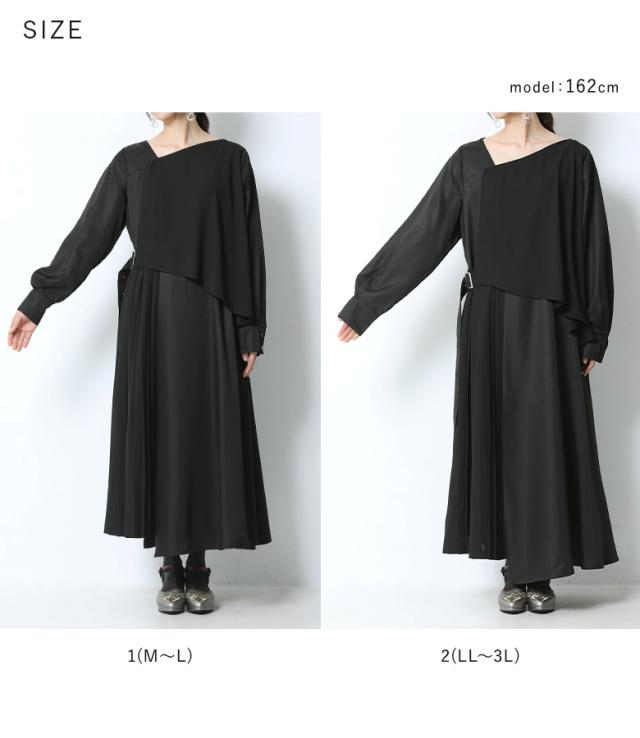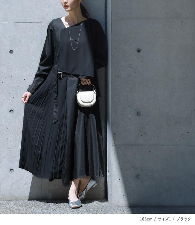 『大人の魅力高める、アシメデザイン。』 個性を惹き立てる特別な一着。 着る人の存在感を惹きだす優秀ワンピース。 プリーツ部分と重ねられたシフォンのふわっと揺れるシルエットが魅力。綺麗なアシメラインで周りと差のつくデザインを実現しました。 後ろのデザインもキレイなアシメラインだから後ろ姿まで完璧。ワンポイントとなるベルトを絞れば、ウエストをすっきり魅せられます。 ほど良いハリ感のあるスーツ生地とサラッとしたシフォン生地をドッキング。これからの季節はもちろん、ロングシーズン活躍。M〜3Lサイズ展開だからお好みのシルエットをお選びいただけます。 クリーンでモードな世界観に包み込まれる≪ kOhAKU ≫。 服と体の関係性を様々な角度から追及するドメスティックブランド。 個性を惹き立てるアシメラインが魅力≪kOhAKU≫アシメデザインフレアワンピースです。 |