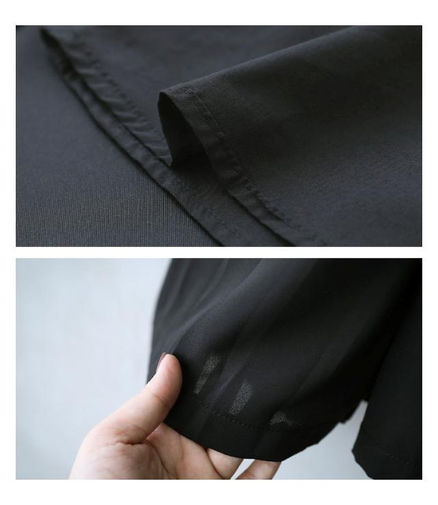 | 「標準さん」 157cm/51kg B85 W69 H89 普段はM またはLサイズ着用。 | 【1(M〜L)】 ◆袖丈:ボタンを留めて手の甲にかかる位 ◆着丈(短):足首位 ◆着丈(長):くるぶしが隠れる位 【2(LL〜3L)】 ◆袖丈:ボタンを留めて手の甲が隠れる位 ◆着丈(短):足首下位 ◆着丈(長):かかとが見える位 1(M〜L)は、肩周りやバストに少しゆったり感がありますが、スッキリとしたシルエットでキレイに着られました。2(LL〜3L)は、全体的にゆったりしていて体のラインが出ず、楽に着られました。 |