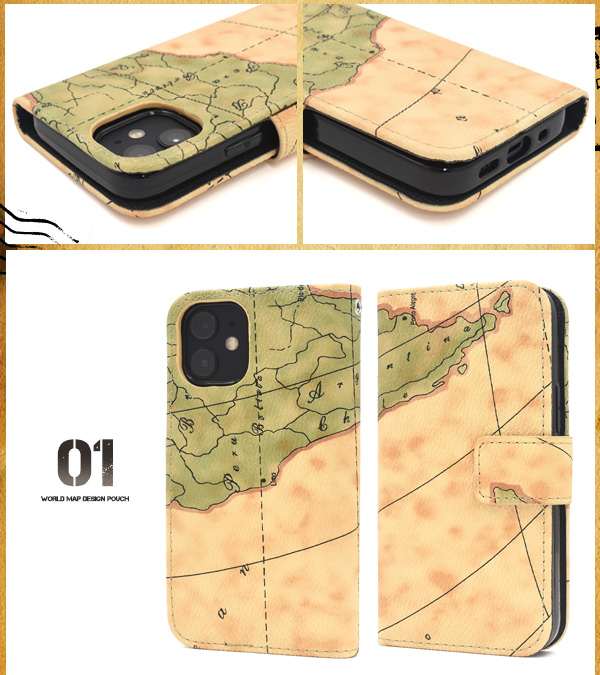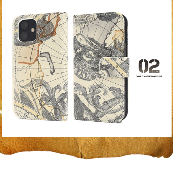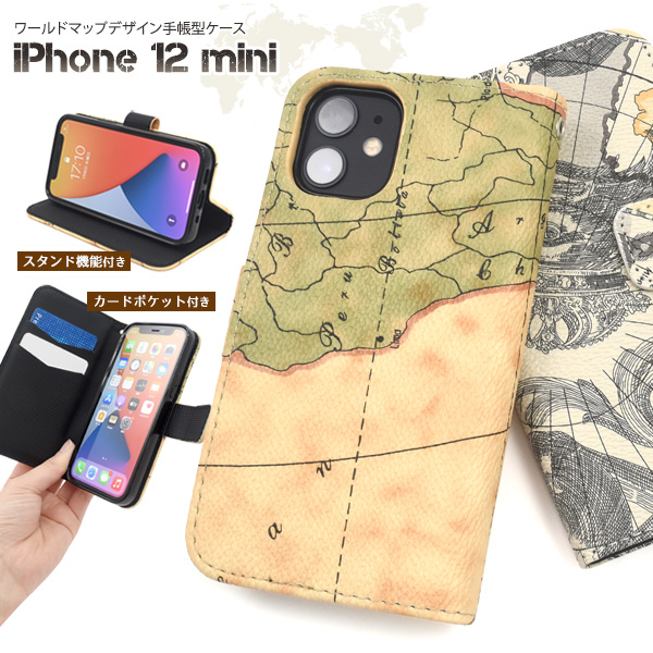 スマートフォンケース iPhone12mini用 手帳型 地図柄 スマホケース ワールドマップデザイン 携帯ケース 装着簡単 マップ柄 スマホケース シンプル カジュアル オトナ女子 保護カバー 世界地図 オシャレ おしゃれ スマホカバー 大人女子 SoftBank au docomo