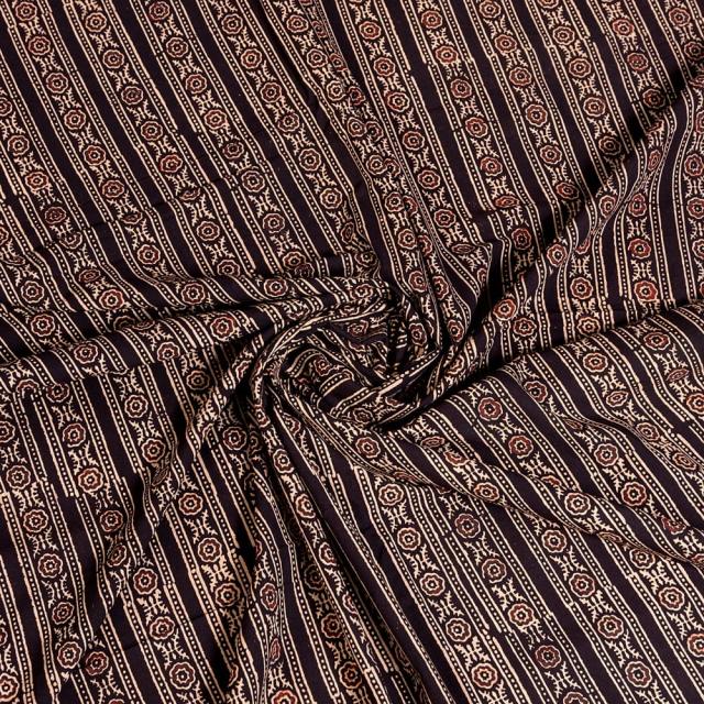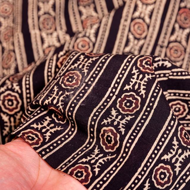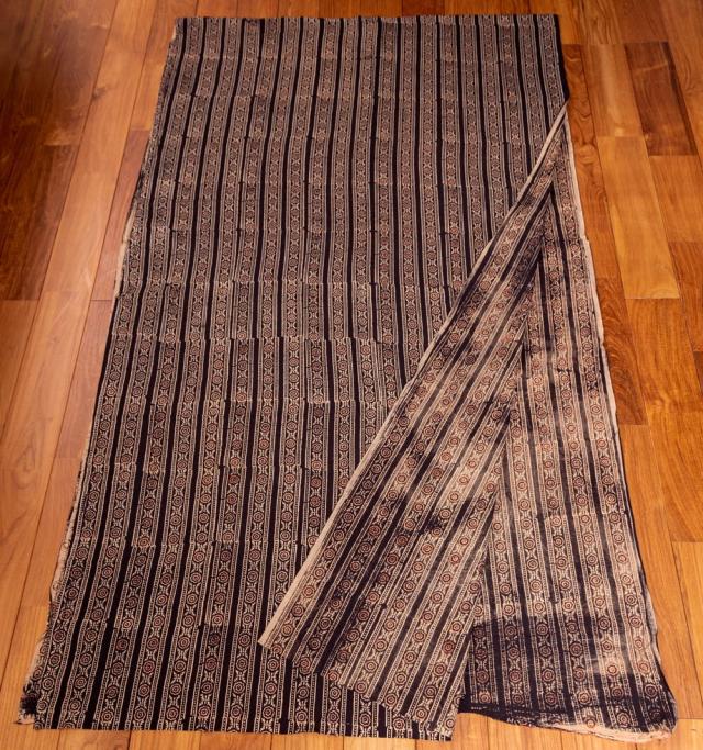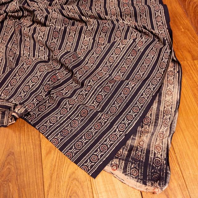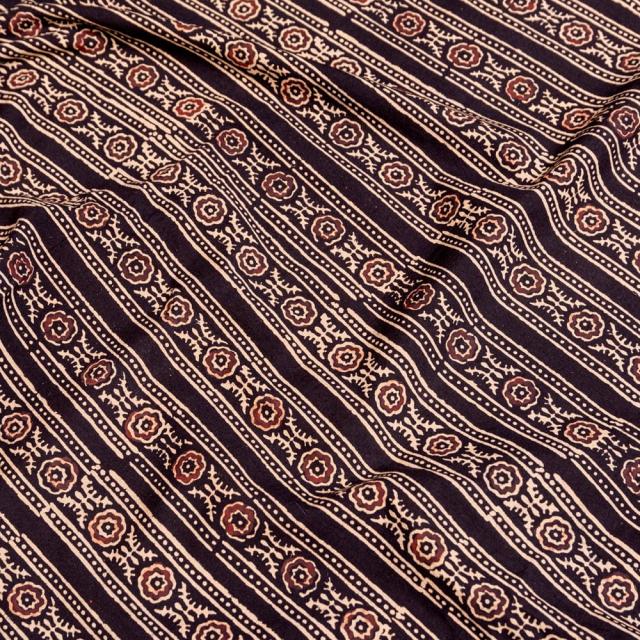 〔約3.8m 長尺布】伝統息づくインドから 昔ながらの木版染めアジュラックデザインの伝統模様布〔横幅:約110cm〕 / ウッドブロック、Ajrak、木版染め、ボタニカル、唐草模様、手芸、生地、切り売り、アジア布 手芸 インテリ