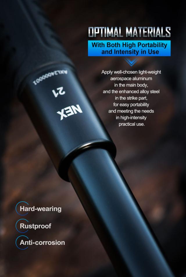 NEXLOCKは誰でも簡単にバラしたり組み立てたりが可能で、中身が分かり易くメンテナンスが楽な構造とも言えます(動画をご参照ください)。2mの落下試験にも合格する耐衝撃強度も兼ね備えていて、バトンはガタツキも少なくスムースな開閉は取り扱いを容易にします。