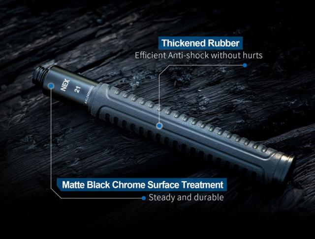 NEXTORCHのバトンには独自のロック機構(NexLock)が採用されています。殆どの中国メーカーがASPのTALONを真似てオートロックバトンを製作するのに対してNexLockは、他では見られないシンプルな構造でオートロックバトンを仕上げています。特許侵害に触れない為、欧米にも輸出が可能です。国際入札にもメジャーブランドと共に参加している数少ないオートロックバトンメーカーになります。クイッカーシリーズと4140鋼を使用したスチールバトンは警棒の試験では最も難しいと言われるTR試験にも合格しています。そのため世界の軍事市場でも人気があるバトンです。近年ではルーマニアやドイツ軍にも納入された実績があります。