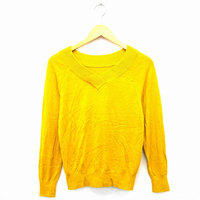 【中古】ビス ViS ニット セーター リブ 無地 シンプル Vネック 長袖 M イエロー 黄 /MT32 レディース
