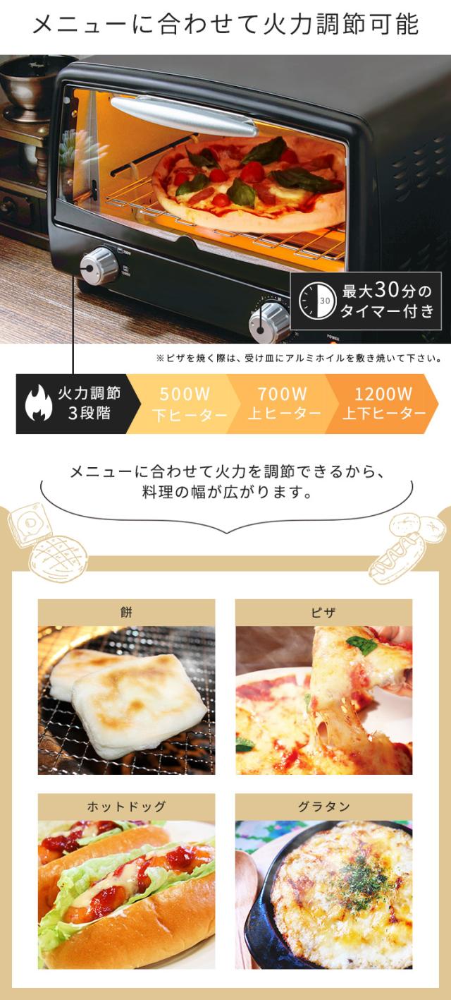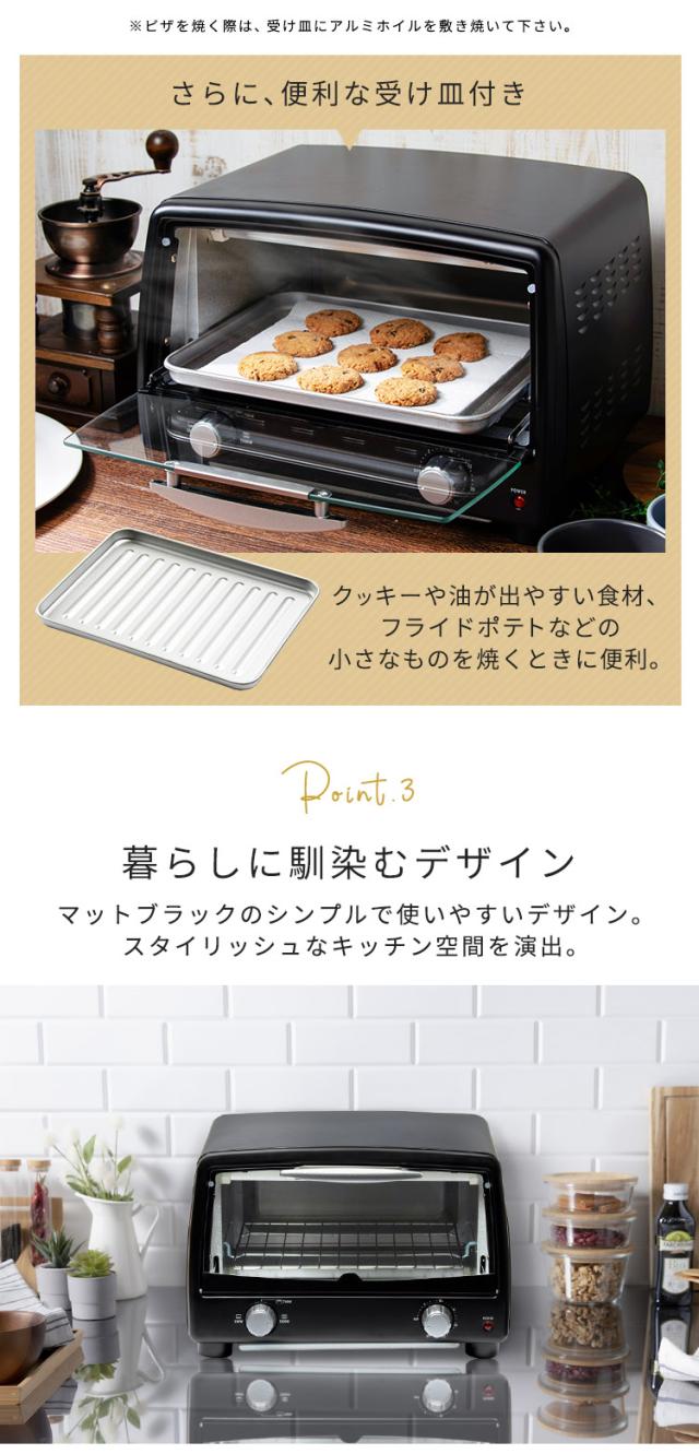 マッドブラックのシンプルで使いやすいデザインのオーブントースターです。