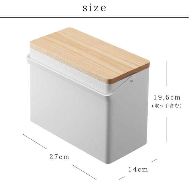 ■サイズ:本体/幅27×奥行14×高さ19.5(取って含む)、容器/幅27×奥行14×高さ18(取っ手含む)、蓋/幅26×奥行13×高さ2、トレー/幅12.5×奥行12.5×高さ5、内寸上段/幅25.5×奥行12.5×高さ5.5、内寸下段/幅25.5×奥行12.5×高さ12.4、木蓋トレー部/幅24.5×奥行11.5×高さ0.8、トレー仕切り大/幅12.4×奥行5.8×高さ3.5、トレー仕切り中/幅6.2×奥行6.2×高さ3.5、トレー仕切り小/幅6×奥行6.2×高さ3.5cm