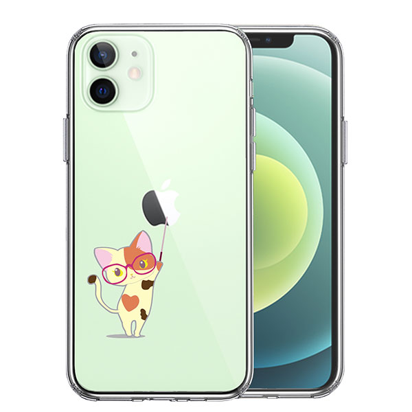 iPhone12mini ケース ハードケース ハイブリッド クリア ジャケット 三毛猫 メガネ カバー アイホン アイフォン スマホケース