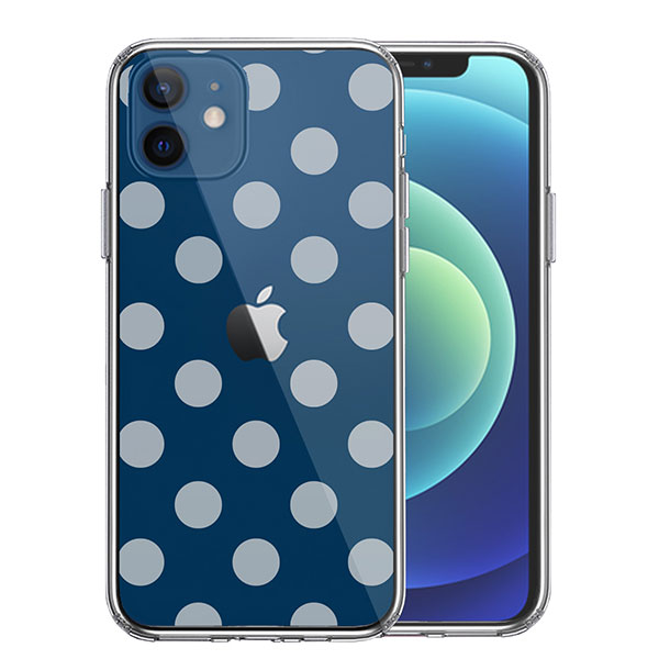 iPhone12mini ケース ハードケース ハイブリッド クリア 水玉 ブルーグレー カバー アイホン アイフォン スマホケース
