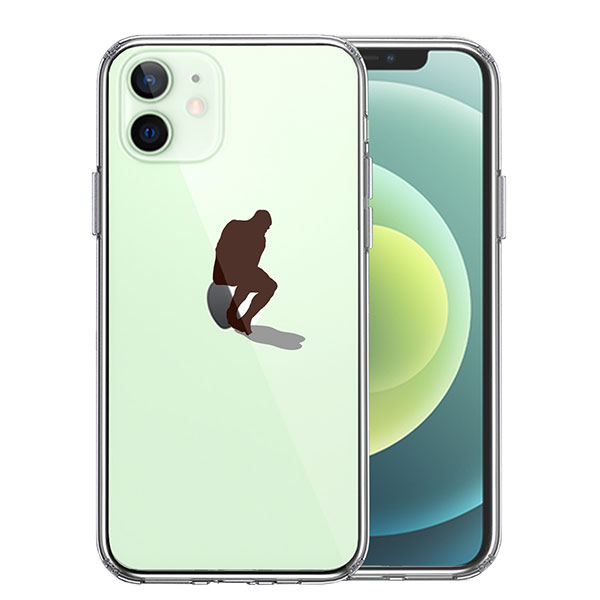 iPhone12mini ケース ハードケース ハイブリッド クリア りんご で 考える人 カバー アイホン アイフォン スマホケース