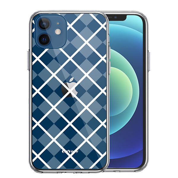 iPhone12mini ケース ハードケース ハイブリッド クリア 格子柄 アペンド チェック ホワイト カバー アイホン アイフォン スマホケース