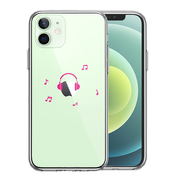 iPhone 12 12Pro 12mini 12ProMAX ケース ハードケース ハイブリッド クリア ヘッドフォン ヘッドホン ピンク カバー アイホン アイフォン スマホケース