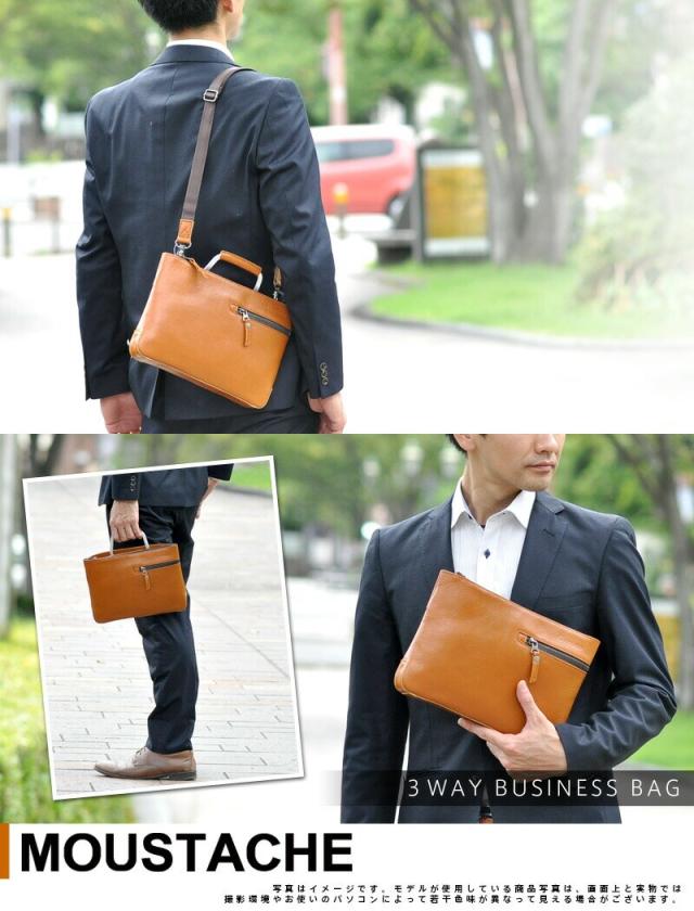 ショルダーバッグ 通勤 男性 Sサイズ 3wayビジネスバッグ クラッチバッグ 小さめ ムスタッシュ MOUSTACHE jwe2225 仕事 バッグ 革 牛革 ポイント10倍 送料無料 ラッピング無料