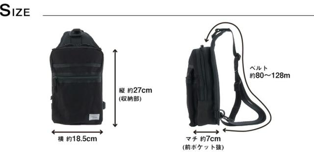 | サイズ(約) ※当店実寸値 | 横18.5×縦27(収納部)×マチ7(前ポケット抜き)cm ※公式 【ベルト】80〜128cm | ||