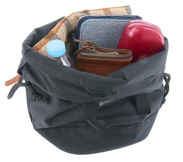 巾着部分のコードを使ってショルダーポーチのように使うもよし、ウェビングハンドルでトートバッグのようにして使うもよし。この収納力の大きい巾着バッグの使い方は無限大です。