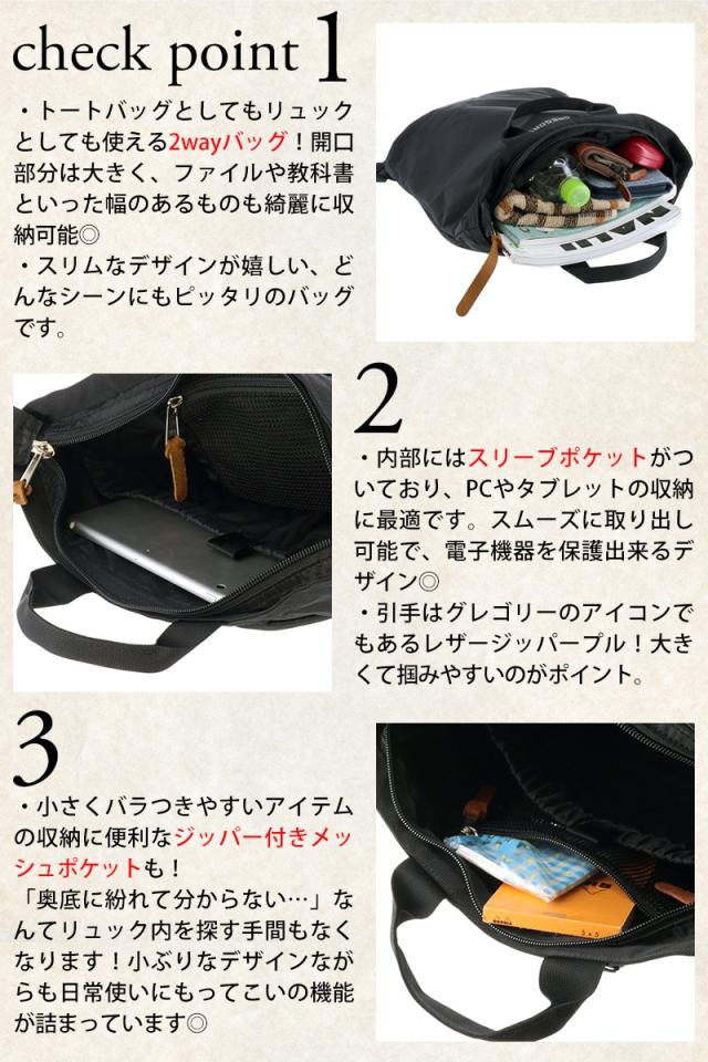 | 備考 | 【メイン開閉】ファスナー 内側/ オープンポケット×1 ファスナーポケット×1 ■手提げにもできる持ち手付き ■ジッパー開閉のメインコンパートメント ■グレゴリーのアイコンでもあるレザージッパープル ■内部に小さくバラツキがちなアイテムの収納に便利なジッパー付きメッシュポケット ■PC/書類などの収納に便利な内部のスリーブポケット ■パッド入りショルダーハーネス ■裏地を貼って補強されたボトム部 ■シングルポケット・ツーウェイポケット(別売り)取り付け用の8リングアタッチメント キーワード: プレゼント ギフト ラッピング ラッピング無料 メンズ レディース 男性 女性 通勤 通学 習い事 シンプル 無地 花柄 ブラック A4サイズ B4サイズ 15L ノートPC タブレット 収納可能 ビジネス 学生 ブランド ポイント消化 ニューバッグワカマツ | ||