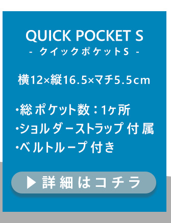 手元に置いておきたい携帯電話やカメラを収納するのに最適なショルダーポーチとして人気の『クイックポケット』のMサイズ(2L)。