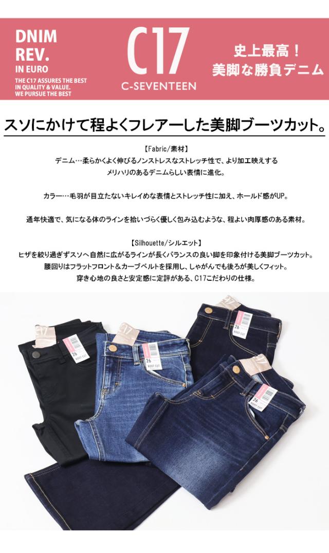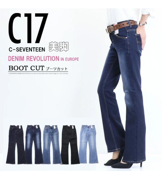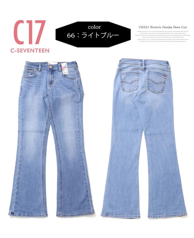 C17 C-SEVENTEEN CB321 ベーシック ブーツカット フレアー デニム ジーンズ ストレッチ シーセブンティーン 送料無料 SALE レディース