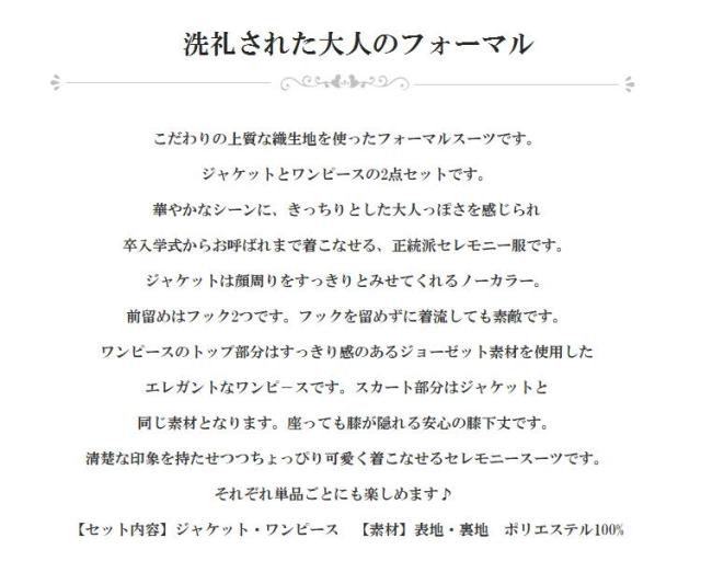 卒入学式からお呼ばれまで着こなせる、正統派セレモニー服です。