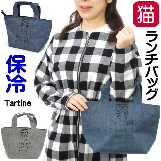 ランチバッグ 保冷 保温 ネコ柄 タルティーヌ プリント 総柄 軽量 クーラーバッグ トートバッグ ランチトート ねこ ネコ CAT