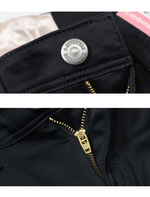 定番商品「C17 大きいサイズ ストレート(商品番号:CR414)」の後継モデル。 以前のモデルよりも全体的にタイトになり、スッキリ美シルエットを実現させました。 脚がまっすぐ見えるよう研究された美脚パターン設計。 股上を少し下げる事で小股にシワが出るのを解消。 以前より少し大き目にしたヒップポケットが、小尻効果を発揮してくれます。 どんなトップスともすっと馴染んでくれるデイリーユースにぴったりの1本です。