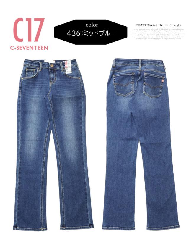 大きいサイズ C17 C-SEVENTEEN レディース CR424 ストレート デニム ジーンズ ストレッチ パンツ シーセブンティーン C-17 送料無料