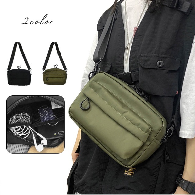 ショルダーバッグ メンズ レディース 小さい 2色 グリーン ブラック ナイロン 軽量 送料無料 メール便 代引き不可