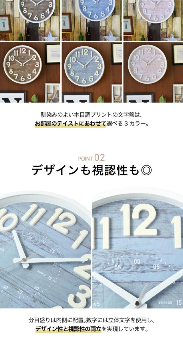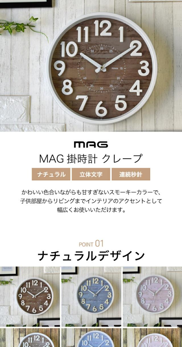【送料無料】 MAG 掛時計 クレープ | 木目調 アナログ ウォールクロック 掛け時計 壁掛け時計 見やすい 立体文字 ウッド調 連続秒針 静か 静音 寝室 リビング 子供部屋 書斎 オフィス おしゃれ デザイン かわいい シンプル インテリア 引越し プレゼント 雑貨 新生活 ギフト