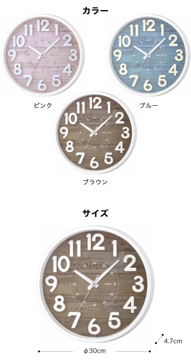 | 注意事項 | ※ご覧の環境により、色の見え方が異なる場合がございます。 ※電池は別売です。 ※2022年5月中旬より順次針の仕様を変更いたします(短くなります)。当ページでは、カラー・サイズの白抜き画像は新仕様の写真を使用しております。ご注文の際、仕様はお選びいただけませんので予めご了承ください。 |