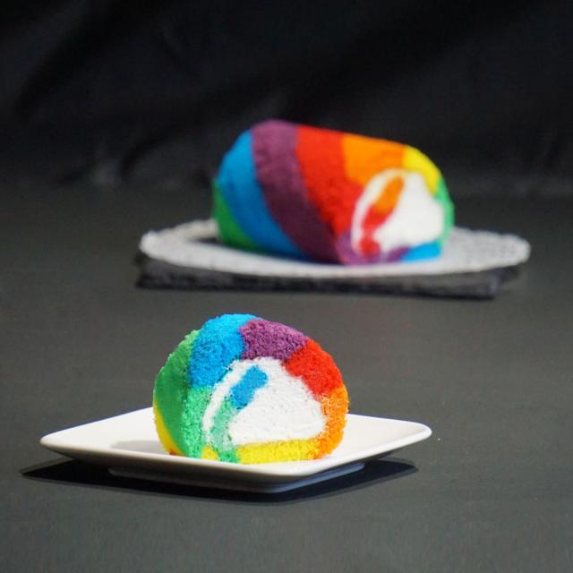 ◆映えるスイーツあります。インスタなどSNS映えばっちりのケーキができました。カラフルなレインボー柄は、どこにおいても存在感抜群。