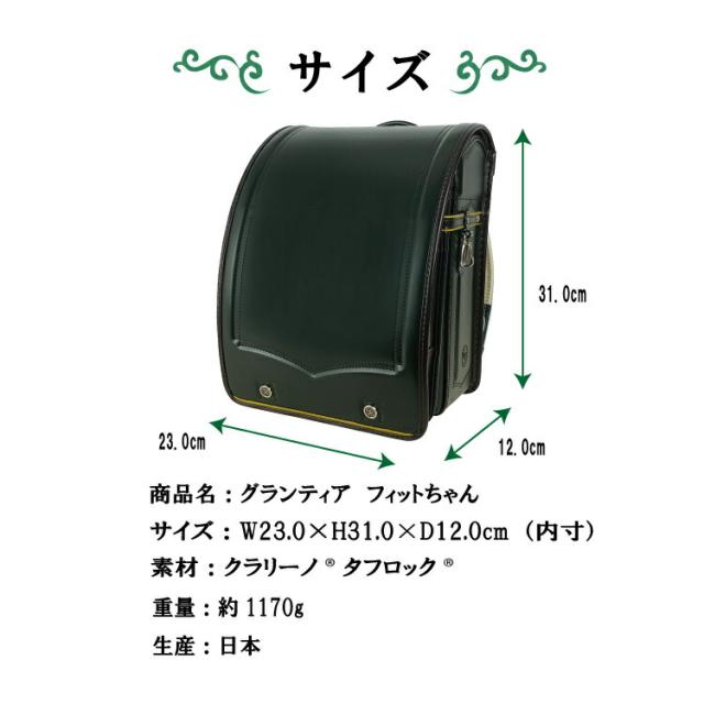 人気の”フィットちゃん”ランドセル! クラシックなデザインで上品さ漂うグランティアシリーズです。 シックなカラーで落ち着きのある雰囲気に! ワンポイントのラインが本体カラーを引き立てます。 反射材も利用し、安心の日本製で6年保証つき。 お子様の安心・安全な学校生活をサポートします。 ー DETAIL ー ■サイズ(内寸)約W23.0×H31.0×D12.0cm ■重量 約1170g ■主素材 クラリーノタフロック ■付属品 6年間保証書 ■生産 日本 ■その他 背面エアーフレッシュ、前段ワイドポケット、360度反射 トリプルガード、持ち手つき、ワンタッチロック錠前 ■下記地域へのお届けは、配送の都合上、一部送料のご負担をお願い致します。 ┗離島、沖縄県…2,500円 -※ご注意- ●ご使用に差しさわりの無い変更がある場合がございます。 ●一点一点手作りのため個体差がございます。 ●商品サイズは、企画サイズとなります。 ●商品画像につきましては、モニターの種類・設定等により、実際の商品とは素材感や色味が異なる見え方をする場合があります。 ●商品仕様は、予告無く仕様変更される場合がございます。予めご了承下さい。 ●生地にわずかな織糸の縫いこみなどがある場合がありますが、目立つ程度ではございませんので予めご了承ください ●商品によっては、他店と在庫共有しているものがございます。ご注文を頂戴した時点で在庫が確保できない商品につきましては、 ご注文をキャンセルさせていただく場合がございます。何卒ご了承の程よろしくお願いいたします。 |