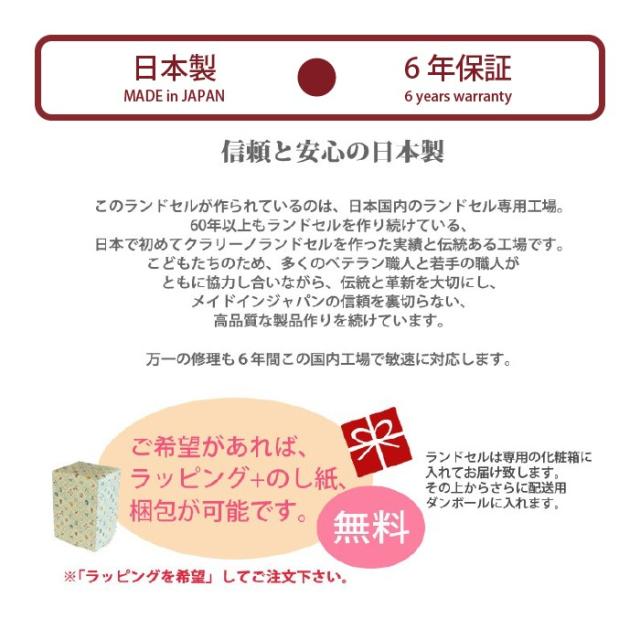 女の子に人気の”キラキラミルモ”ランドセル!! 大容量で刺繍がかわいいプレミアムワイドシリーズです。 かぶせや側面に刺繍をあしらったかわいらしいデザイン! 光沢のあるかぶせ鋲や華やかさのあるステッチデザインがかわいらしさを一層引き立てます。 前段ポケットは薄マチフラットファスナーを採用し、メイン収納の13.5cmワイドマチを実現しました。 安心の日本製で6年保証つき。 お子様の安心・安全な学校生活をサポートします。 ー DETAIL ー ■サイズ(内寸) 幅23.0×高31.0×奥13.5cm ■重量 約1150g ■主素材 クラリーノエフ ■付属品 6年間保証書 ■生産 日本 ■その他 13.5cmワイドマチ、ワンタッチロック、持ち手つき、A4フラットファイル対応 前段薄マチポケット、反射材使用、Dカン、安全ナスカン、出入り口ストロング加工 ■下記地域へのお届けは、配送の都合上、一部送料のご負担をお願い致します。 ┗離島、沖縄県…2,500円 -※ご注意- ●ご使用に差しさわりの無い変更がある場合がございます。 ●一点一点手作りのため個体差がございます。 ●商品サイズは、企画サイズとなります。 ●商品画像につきましては、モニターの種類・設定等により、実際の商品とは素材感や色味が異なる見え方をする場合があります。 ●商品仕様は、予告無く仕様変更される場合がございます。予めご了承下さい。 ●生地にわずかな織糸の縫いこみなどがある場合がありますが、目立つ程度ではございませんので予めご了承ください ●商品によっては、他店と在庫共有しているものがございます。ご注文を頂戴した時点で在庫が確保できない商品につきましては、 ご注文をキャンセルさせていただく場合がございます。何卒ご了承の程よろしくお願いいたします。 |