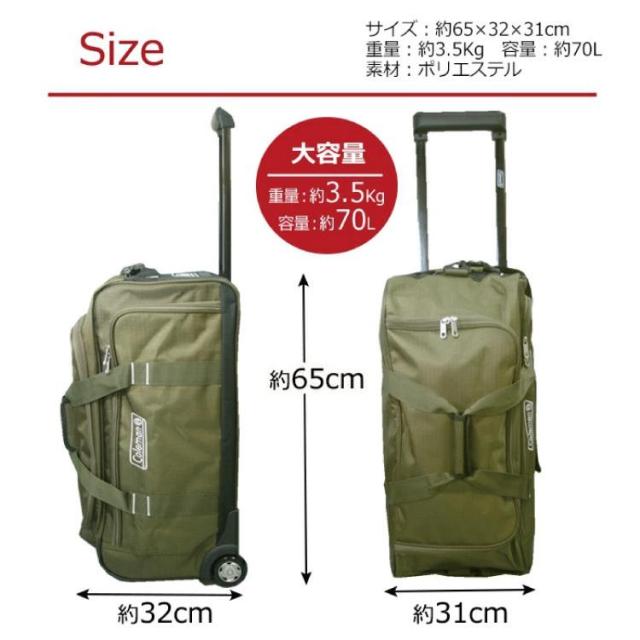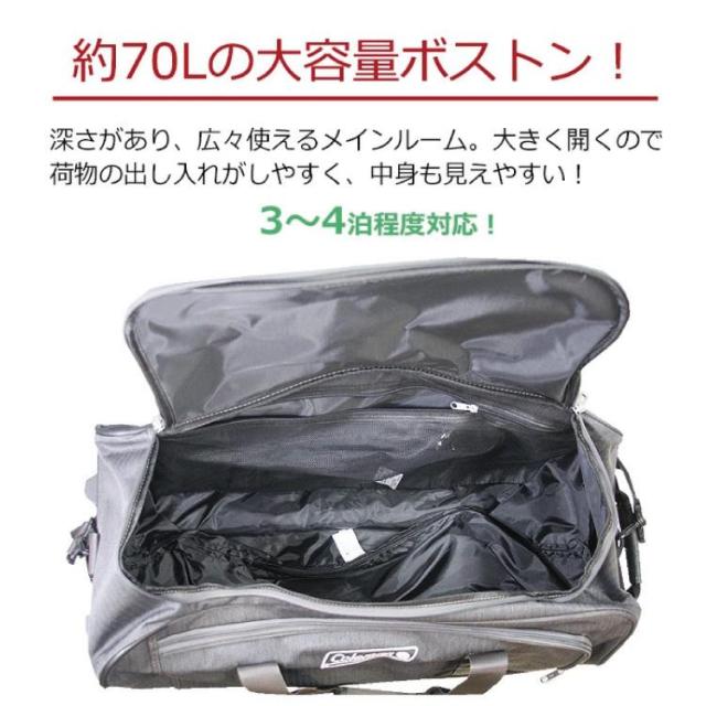 コールマン ボストン キャリー 大容量 送料無料 バッグ ボストンキャリー ショルダーバッグ 14-11 70L 男女兼用 キャリーケース トランク 旅行かばん アウトドア 旅行 ソフトキャリー 出張 修学旅行 レディース メンズ 3way