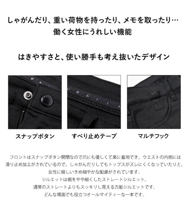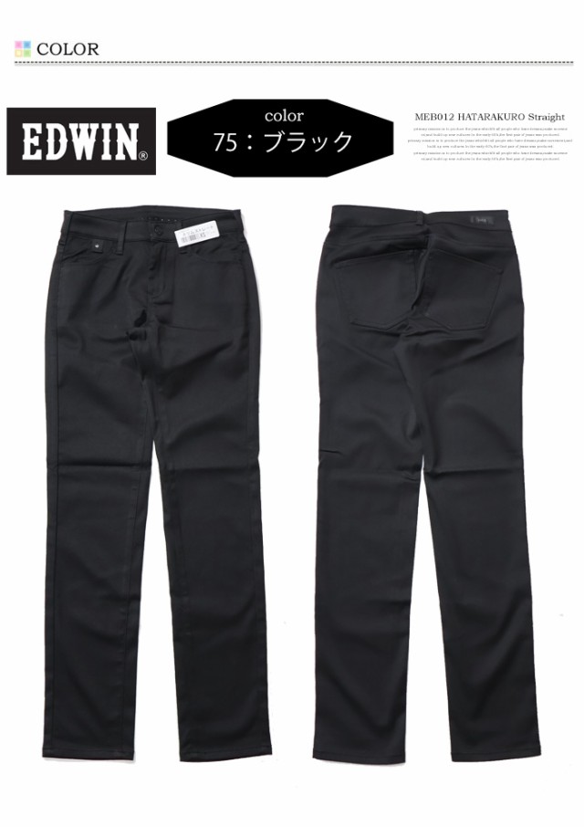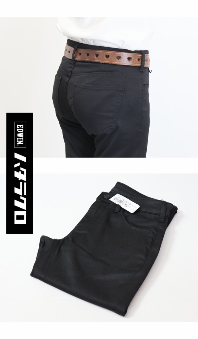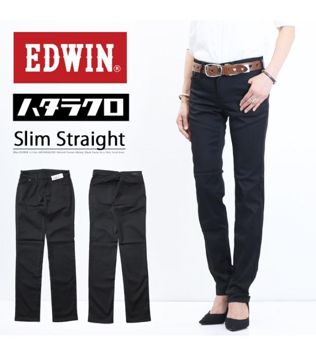EDWIN エドウィン レディース ハタラクロ スリムストレート パンツ ストレッチ ボトムス 仕事着 作業着 送料無料 ミスエドウィン MEB012-75 ブラック 黒