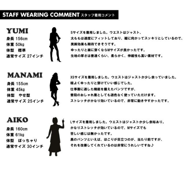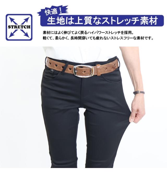 仕事用としても穿ける黒パンツは「ほこりが付くと目立つ」「毎日穿いているとすぐ色が褪せてしまう」 という悩みを解決してくれるパンツです。ストレッチ性が高く、しっかりした綿タッチ素材です。 ポリエステルとレーヨン混紡原着糸(通常は紡糸した後に染色しますが、綿段階から染める)を使っているためホコリがつきにくく、色褪せしにくい素材です。