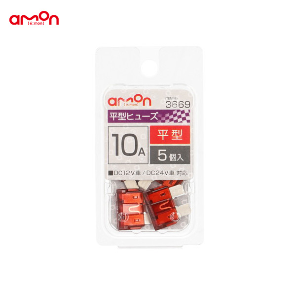 エーモン/amon 平型ヒューズ 10A 5本入 交換 約19×19×5mm DIY 車 3669