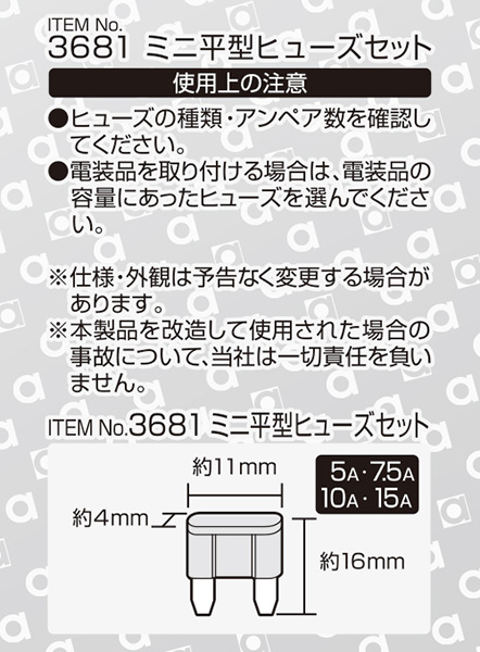 エーモン/amon ミニ平型ヒューズセット 5/7.5/10/15A 交換 約11×16×5mm DIY 車 3681