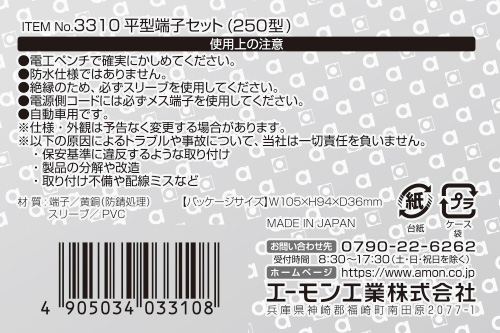 エーモン/amon 平型端子セット 配線 35セット 接続 AV(S)0.5〜2sq 250型 コード接続 3310