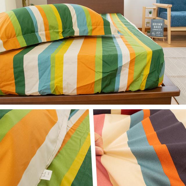 また、単調なストライプ柄はセミダブルサイズ以上のカバーにできる「生地の継ぎ目」が目立ちにくいのもポイント。