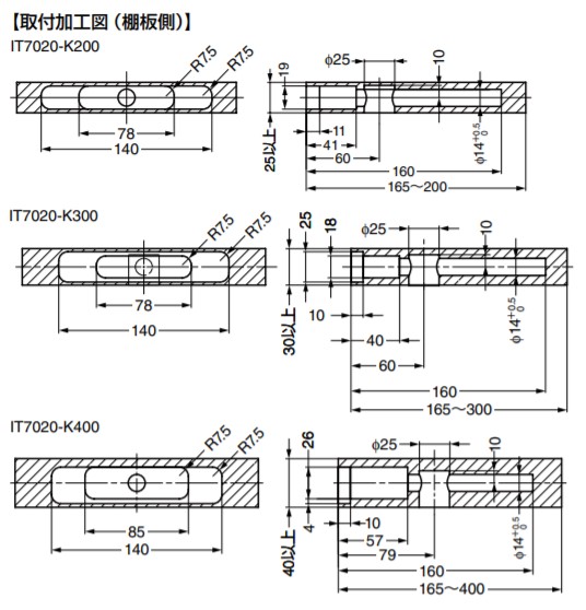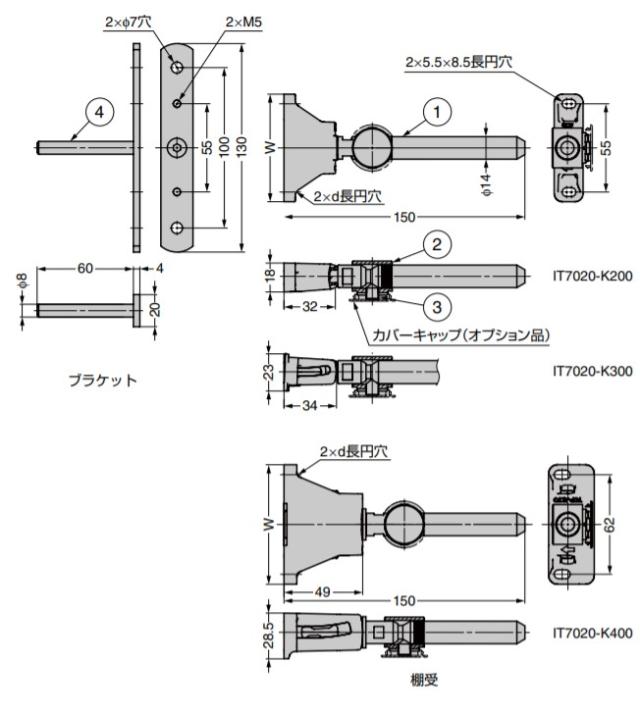 隠し 棚受 IT7020-K型 本体 固定タイプ 上下 左右 角度調整機能付