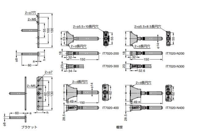 隠し 棚受 IT7020型 上下 左右 角度調整機能付