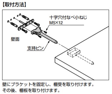 | 隠し 棚受 IT7020型 上下 左右 角度調整機能付 IT7020-400が新たに加わりました。 金物のまったく見えない棚が制作できる棚受金具です。 ハニカムボード対応タイプもあります。 【仕 様】 上下・左右・角度調整機能付 【注 意】 下表の耐荷重は、棚受取付面から重心までの距離が100mmの場合の数値です(棚板の荷重も含む)。 棚受を棚板へはめ込むだけで取り付けられます。棚板は手前へ引っ張らないでください。 棚受とブラケットはセットになっています。合わせてご使用ください。 取り付ける壁面は、硬い木材など強度のある材料をご使用の上、固定ねじはしっかりと締めてください。本体が脱落する恐れがあります。 支持ピンの先端側を0.5度〜 1度程度迫り上げてから棚を取付けてください。 【付属品】 十字穴付なべ小ねじM5x12 【取付方法】 壁にブラケットを固定し、棚受を取り付けます。その後、棚板を取り付けます。 【左右調整方法】 棚受の支持ピンが左右にスライドします。支持ピンを加工穴の位置に合わせ、棚板を差し込みます。 【角度調整方法】 【1】矢印の方向に軸を回して緩め、角度を調節してから再度締め付けます。 【2】固定ねじを締めた後、棚板を最後まで押し込みます。 【推奨使用数】 棚板幅:使用数 1200:2ヶ 1800:3ヶ 2400:4ヶ 【材料】 亜鉛合金(ZDC)/鋼 【仕上】 亜鉛めっき 【サイズ】 適応板厚:h:a:w:d 25以上:15:5:67:5.5x8.5 【耐荷重N】 壁から重心までの距離mm:100 70/1ヶ 【耐荷重kgf】 壁から重心までの距離mm:100 7.1 /1ヶ 【重量】 334g ※本品は在庫限りで、型色名がIT7020-N型に、注文コード、品番、形状が変わります。 旧注文コード:120-016-463 新注文コード:120-046-024 旧品番:IT7020-200 新品番:IT7020-N200 輸入品のため「寸法・色調・作動感のばらつき」や、予告なく仕様変更等を行う場合があります。 製品内容は、部品としての品質範囲です。この部品を使用した最終製品の機能・性能・安全を保証するものではありません。 【注文コード】 120-046-024 【品番】 IT7020-N200 ※画像はイメージです。 ※パッケージ、仕様、品番などの変更が予告なく変更される場合が御座います。 カテゴリー |