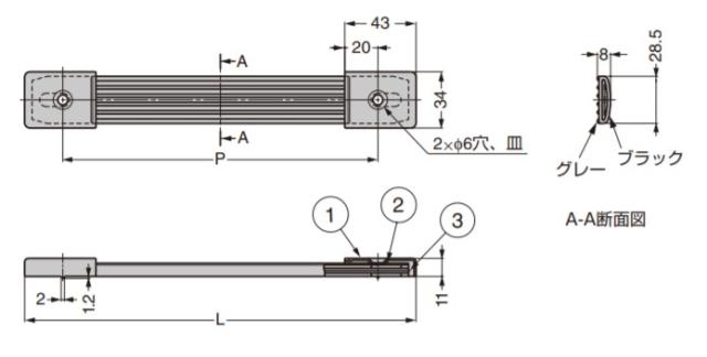 SUGATSUNE スガツネ工業 ビニールハンドル PS型 100-010-250 PS-220 | ハンドル カバー 鋼 ブラック焼付塗装 取手 塩化ビニル樹脂 PVC グレー /ブラック 補強板 鋼 有色クロメート処理