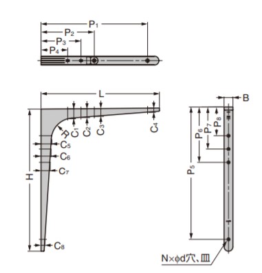d:取付穴数N:C1:C2:C3:C4:C5:C6:C7:C8:R