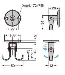 フック部が回転し、吊下方向が自由になる使いやすいフックです。