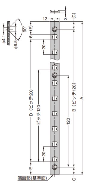 | アルミ製 棚柱 AP-DM型 面付仕様 PAT アルミニウム合金製のため、棚柱を木製家具に取り付けた状態や、棚柱を束ねた状態での切断加工が容易です。 厚みが3mmと薄く、面付仕様であっても棚板との隙間が気になりません。 ねじ穴の数を従来品の1.8倍に増やしているため(当社比)、短くカットした際のねじ穴不足や側板の芯材位置との兼ね合いも解消します。 予期せぬ接触でも棚受が脱落しにくい、新設計の棚受取付穴形状です。 【別売品】 棚受 ・AP-FB20型 エンドキャップ ・AP-EC20型 【オプション品】 棚受 AP-FB20型に組み合わせて使え る製品 ・棚受キャップ ・棚ズレ防止棚受 ・棚ダボ ・角度調整機能付棚受 AP-FK20 、AP-FK20D 収納システムAP-Sシリーズ 【注 意】 ピッチ120mmごとにある、取付穴の突起部が上になる状態で取り付けてください。 黒アルマイト処理は傷が目立ちやすいため、取り扱いにご注意ください。 仕上の色にバラつきがあります。(特にブロンズ)現品にてご確認ください。 面付仕様 【材料】 アルミニウム合金 【仕上】 ブロンズアルマイト処理 【サイズ】 A:B:C:D:E 2600:2520:40:2500:47 取付穴数:22 製品内容は、部品としての品質範囲です。この部品を使用した最終製品の機能・性能・安全を保証するものではありません。 【注文コード】 120-030-087 【品番】 AP-DM2600 ※画像はイメージです。 ※パッケージ、仕様、品番などの変更が予告なく変更される場合が御座います。 カテゴリー |