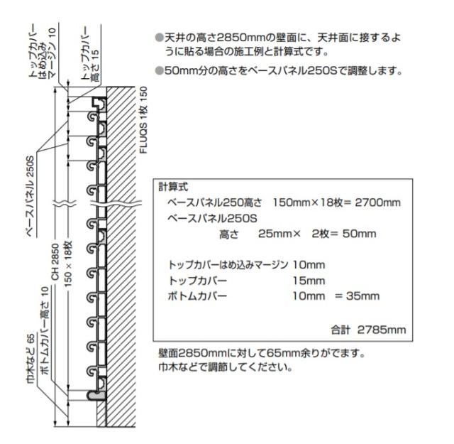 | フルクス 250/750 ボトムカバー 棚やフックを自由に取り付けできます。 ねじで固定していくだけなので、施工が簡単です。 【用 途】 店舗や住宅の装飾棚、陳列棚 ウォークインクローゼット内の収納棚など 【注 意】 水平、垂直を計測してから施工してください。 レイアウト変更時、フックや棚セットを移動させる際は、必ず上方に回転させて、一旦ベースパネルから外してください。その後、希望の位置より再度設置してください。 ※そのままの状態で左右へ移動させると、ベースパネルに傷がつきますので十分ご注意ください。 【墨出し/計算式】 天井の高さ2800mmの壁面に、天井面に接するように貼る場合の施工例と計算式です。 壁面2800mmに対して65mm余りがでます。巾木などで調節してください。 天井の高さ2850mmの壁面に、天井面に接するように貼る場合の施工例と計算式です。 50mm分の高さをベースパネル250Sで調整します。 壁面2850mmに対して65mm余りがでます。巾木などで調節してください。 【取付方法】 1. 下地は300mmピッチで施工してください。 (4mmのねじを使用する場合下穴径直径5mm) ※ねじは付属していません。 2. ボトムカバーを取り付けねじ止めします。 ※水平に取り付けてください。 3.斜めにさし込んでから垂直に立ちあげ、ねじ止めします。 4.同様に連結していきます。 5.最後にトップカバーをはめ込みます。 ねじ止め部分はパネルを重ねることによって見えなくなります。 【コーナー加工図】 コーナー部は、内側を45度にカットしてください。 【コーナー部施工例】 パネルとエンドキャップの組み合わせです。 【安全に関するご注意】 施工にあたっては、カタログの施工手順および取付説明書をよくお読みいただき、正しく取り付けてください。 製品の耐荷重以上に物を掛けたり載せたりしないでください。部品の脱落、変形、破損の原因になります。 ベースパネル 250/750 兼用のボトムカバーパネル 取付の基準となります。 取付ねじは別途ご用意ください。 【材料】 アルミニウム合金 【仕上】 シルバーアルマイト処理マット調 【サイズ】 長さL:3640 取付穴径:直径4 製品内容は、部品としての品質範囲です。この部品を使用した最終製品の機能・性能・安全を保証するものではありません。 【注文コード】 130-030-420 【品番】 EX608-21 ※画像はイメージです。 ※パッケージ、仕様、品番などの変更が予告なく変更される場合が御座います。 カテゴリー |