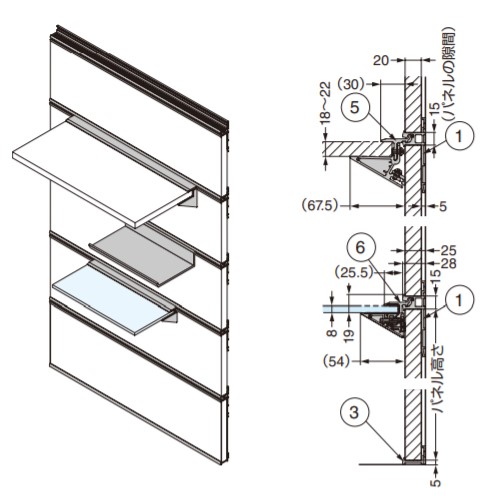 調整付棚受システム VT-DS型棚板取付金具 木製棚板用 脱落防止機構付 上下差込パネル仕様 PAT