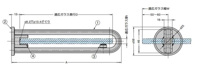 ステンレス鋼製 ガラス 棚受 ZL-2201