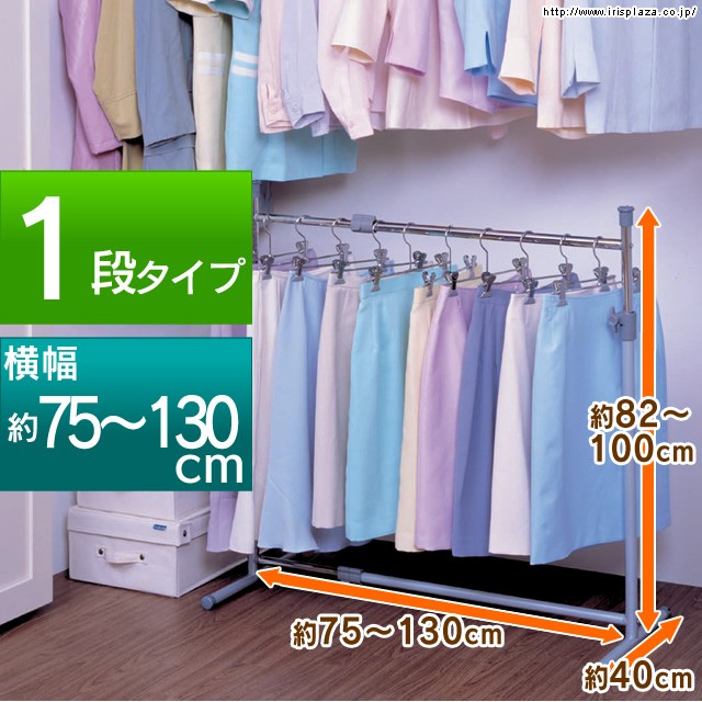 押し入れ上段にピッタリサイズで、縦・横どちらでも設置可能です。クローゼットでも使うことができます。パイプを傷つけずにしっかりと固定する高さ調節ストッパーとワンタッチでスライドできる左右調節ストッパーが付いています。また転倒防止機能付きです。ジャケットなら最大20着、シャツ・ブラウスなら最大25着収納可能です。お客様組み立て。
