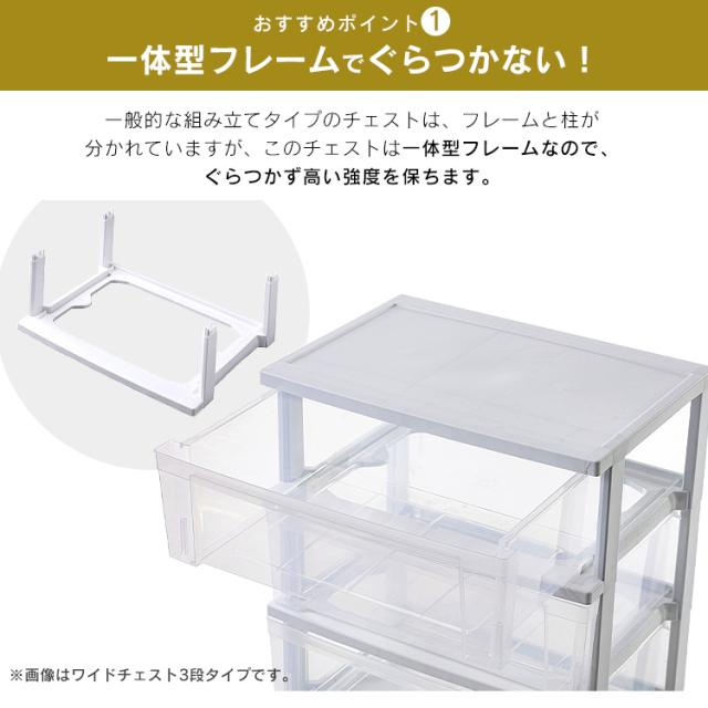 一般的な組み立てタイプのチェストは、フレームと柱が分かれていますが、このスリムチェストは一体型フレームなので、ぐらつかず高い強度を保ちます。