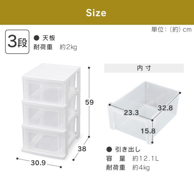 スリムチェスト NSS-323 ホワイト/クリア チェスト 衣類収納 収納 タンス 片付け リビング 衣類ケース 収納ケース アイリスオーヤマ